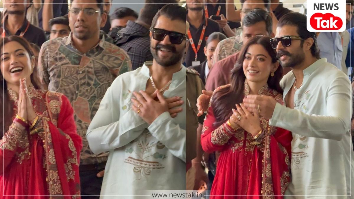 शादी के बाद इस न्यूली वेड कपल की पहली झलक उदयपुर एयरपोर्ट पर देखने को मिली. दोनों को फुल सिक्योरिटी के बीच स्पॉट किया गया, लेकिन इसके बावजूद उन्होंने अपने फैंस का अभिवादन करना नहीं भूला. रश्मिका लाल रंग के खूबसूरत अनारकली सूट में नजर आईं. उनके चेहरे पर नई दुल्हन वाली चमक साफ दिखाई दे रही थी. वह विजय का हाथ थामे बेहद खुश दिख रही थीं. पैपराजी ने भी उन्हें शादी की ढेरों शुभकामनाएं दीं.