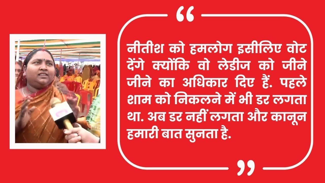 बिहार चुनाव में नीतीश कुमार की महिला वोटर्स के जरिए फिर वापसी...? बेगूसराय और दरभंगा की सभाओं में दिखा महिला वोटरों का रुझान. क्या एक बार फिर महिला वोटर NDA को जीत दिलाएंगी? पढ़िए बिहार ग्राउंड रिपोर्ट.