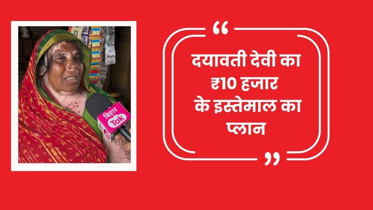 मटिहानी के रचैया गांव में चाय की दुकान चलाने वाली दयावती देवी ने कहा कि दस हज़ार रुपये से महिलाओं बाल बच्चों को पढ़ा लेंगी, कपड़ा दिला देंगी. सरकार ने पैसा रोज़गार के नाम पर दिया है लेकिन ज़रूरी नहीं कि इस्तेमाल रोज़गार के लिए ही हो रहा हो.