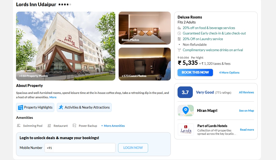 लॉर्ड्स इन उदयपुर उन लोगों के लिए अच्छा ऑप्शन है जो फैमिली के साथ लॉन्ग स्टे प्लान कर रहे हैं. यहां ब्रेकफास्ट, वेलकम ड्रिंक, अर्ली चेक-इन और लेट चेक आउट जैसी सुविधाएं मिलती हैं. होटल की सर्विस और राजस्थानी स्वाद खास पहचान है.