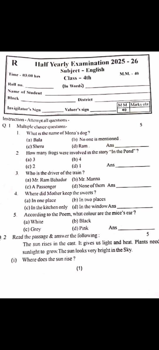 छत्तीसगढ़ के महासमुंद जिले में इन दिनों स्कूल की परीक्षा के दौरान पूछा गया एक सवाल चर्चा का विषय बन गया है. दरअसल सरकारी स्कूलों में चल रही चौथी क्लास की हाफ इयरली परीक्षा में ऐसा अजीब सवाल पूछ लिया गया कि लोग हैरान रह गए.
