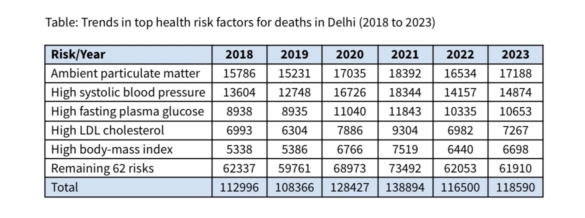 रिपोर्ट के मुताबिक, हवा में मौजूद बारीक प्रदूषक कण यानी पार्टिकुलेट मैटर (PM2.5) अब भी दिल्ली में मौतों का सबसे बड़ा कारण है. रिपोर्ट ये चौंकाने वाली जानकारी भी देती है कि दिल्ली की खराब हवा अब पारंपरिक स्वास्थ्य जोखिमों जैसे हाई ब्लड प्रेशर, डायबिटीज और हाई कोलेस्ट्रॉल से भी कहीं ज्यादा खतरनाक बन चुकी है.