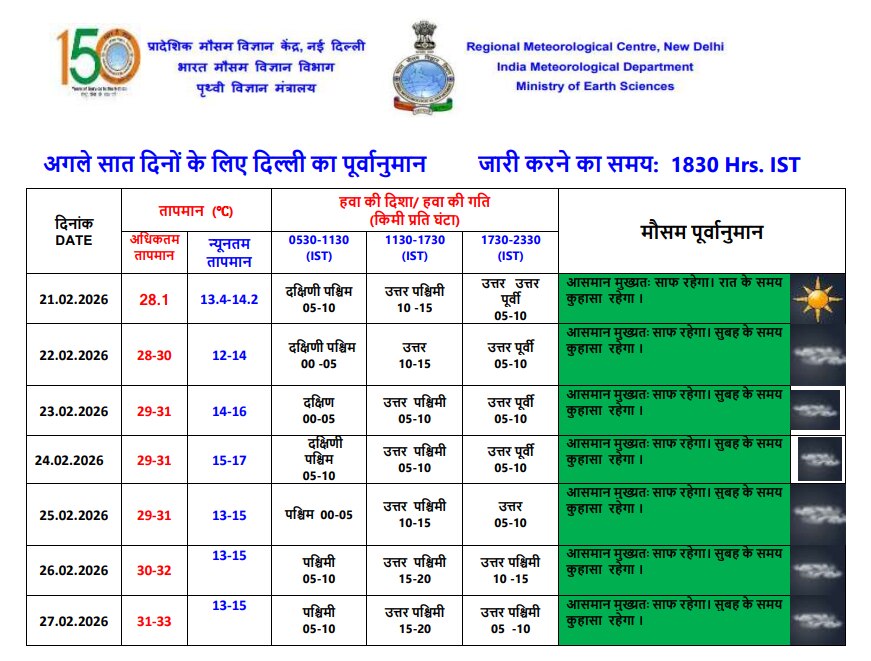 22 फरवरी को कैसा रहेगा दिल्ली का मौसम?