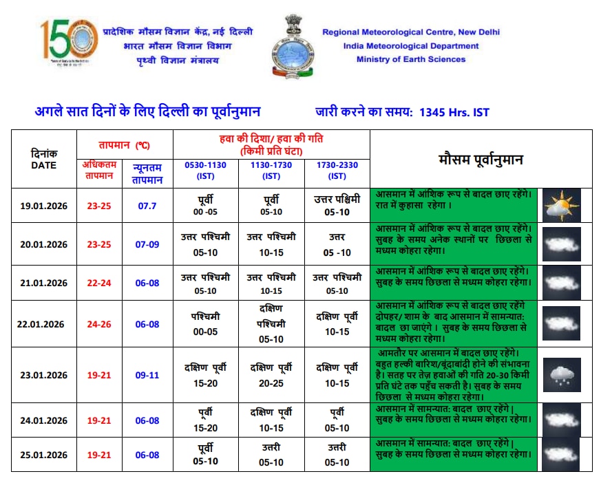 आज 20 जनवरी 2026 को कैसा रहेगा दिल्ली का मौसम?