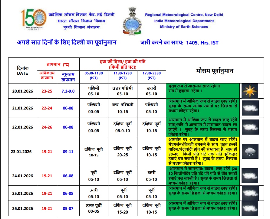 आज 21 जनवरी 2026 को कैसा रहेगा दिल्ली का मौसम?