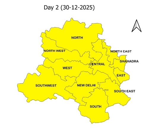 माैसम विभाग के अनुसार, आज यानी 30 दिसंबर 2025 को आसमान में आंशिक रूप से बादल छाए रहेंगे. हालांकि, सुबह के समय कई स्थानों पर मध्यम कोहरा के साथ कुछ स्थान पर घना कोहरा रहेगा. IMD के अनुसार आज दिल्ली का अधिकतम तापमान सामान्य से कम यानी 20 से 22 डिग्री सेल्सियस के बीच रहने की संभावना है. वहीं, न्यूनतम तापमान सामान्य से अधिक रहने की यानी 7 से 9 डिग्री सेल्सियस के बीच रहने का अनुमान है. मौसम विभाग के अनुसार, आज सुबह उत्तर पूर्वी दिल्ली, दक्षिण दिल्ली,दक्षिण-पश्चिम दिल्ली, दक्षिण पूर्वी दिल्ली, नई दिल्ली, पूर्वी दिल्ली, गुरुग्राम, नोएडा, गाजियाबाद उत्तरी, उत्तर-पश्चिम दिल्ली,पश्चिम दिल्ली, मध्य दिल्ली, शाहदरा और फरीदाबाद में कोहरे का येलो अलर्ट जारी किया है. इस दौरान इन जिलों में सुबह के समय मध्यम से घना कोहरा रहेगा और वही दिन में आंशिक रूप से बादल छाए रहेंगे. मौसम विभाग का ऑफिशियल पीडीएफ देखने के लिए यहां क्लिक करें