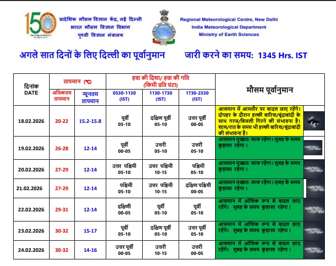 Delhi Weather Today: धूप निकलेगी या होगी बारिश...दिल्ली NCR में 19 फरवरी को ऐसा रहेगा मौसम, IMD ने जारी किया अपडेट