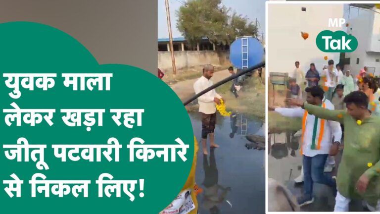 This video of senior Congress leader Jitu Patwari is now viral on social media…Jitu Patwari had gone out to campaign for the elections…he was accompanied by a crowd of his supporters…but suddenly a person fell into the waterlogging on the road. Reached…and started waiting for Netaji to welcome him…Jitu Patwari passed by there…and that person kept calling him inside the waterlogging…but Jitu Patwari went ahead from there…. However, we talked to the person who had adopted this unique way of welcoming Jeetu Patwari.