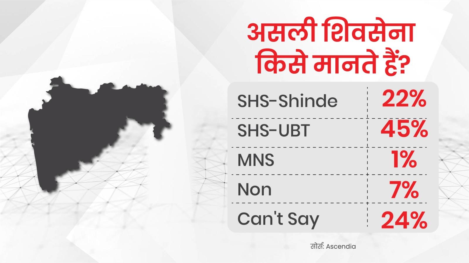 - 45 फीसदी लोगों ने उद्धव ठाकरे की शिवसेना (यूबीटी) को असली माना.