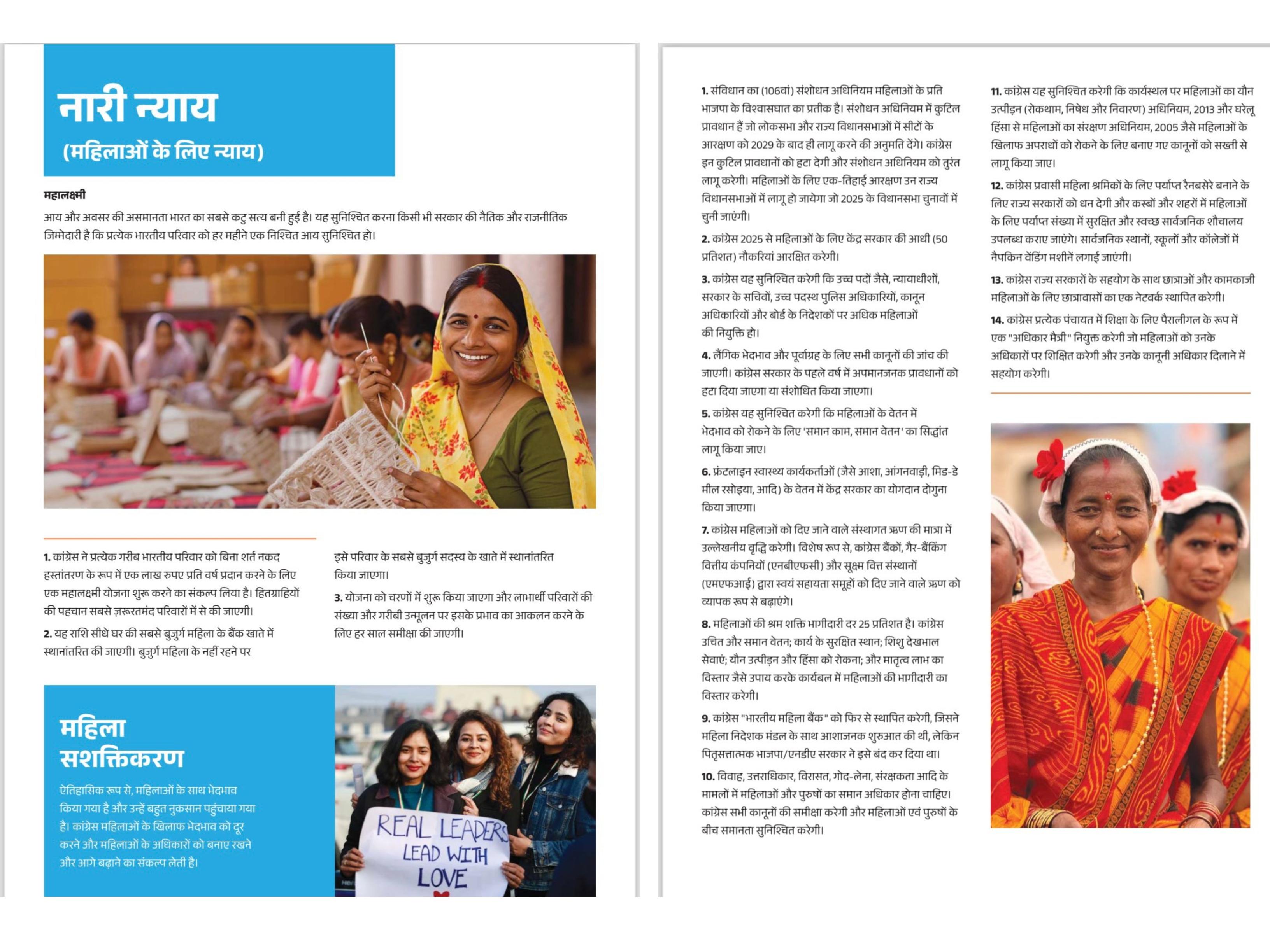 'नारी न्याय गारंटी' के तहत कांग्रेस पार्टी ने देश की महिलाओं के लिए 5 घोषणाएं की हुई है-