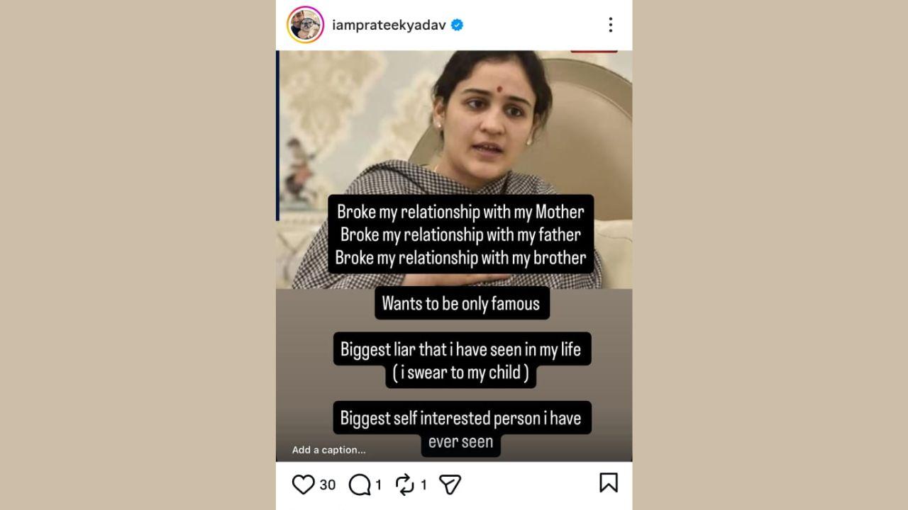 अखिलेश यादव के भाई प्रतीक के इंस्टा अकाउंट पर पत्नी के लिए एक और पोस्ट हुआ अपलोड, अपर्णा यादव पर फिर लगाए कई आरोप