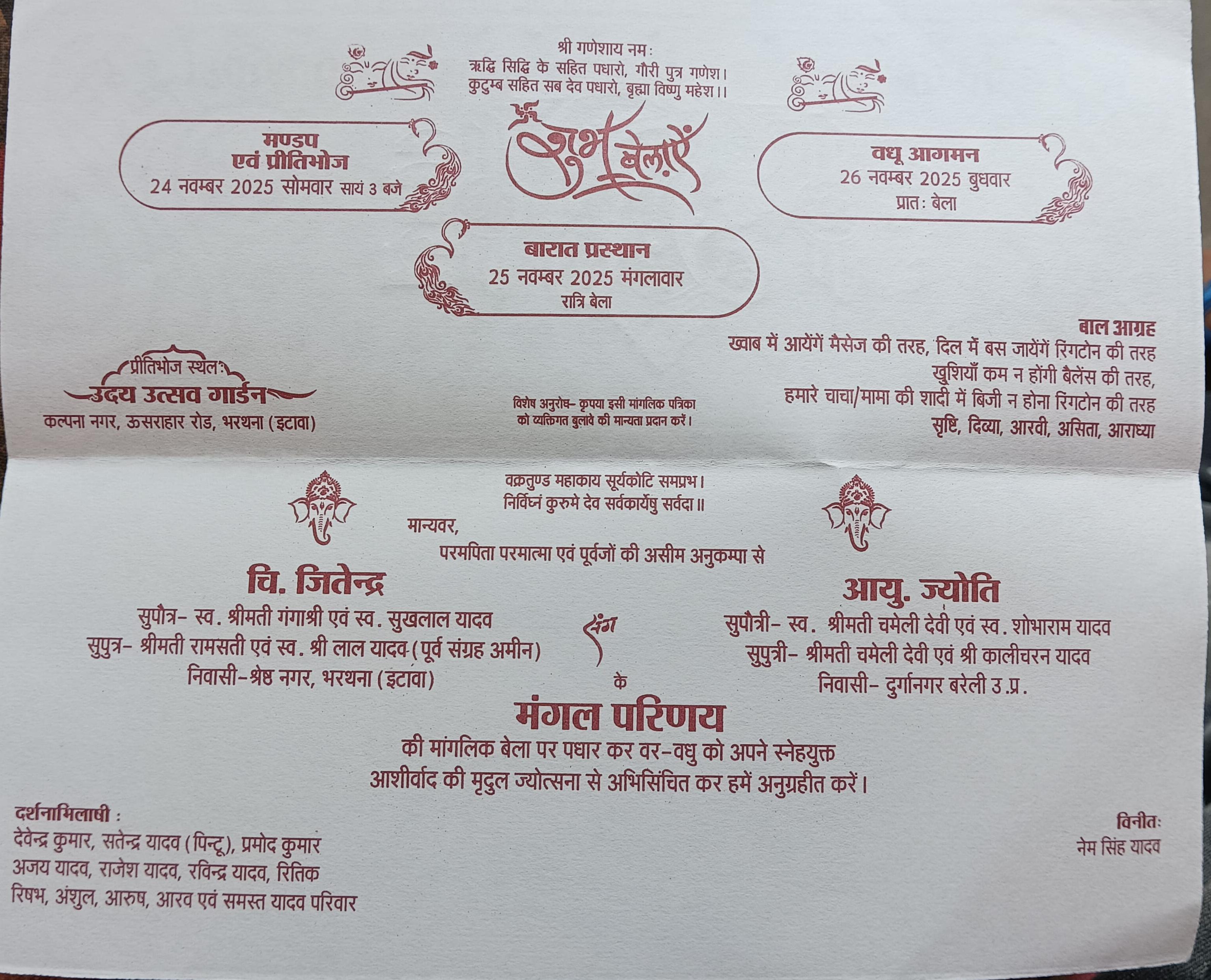 मिली जानकारी के मुताबिक जितेंद्र और ज्योति पिछले 9 सालों से एक-दूसरे से प्यार करते थे. इस बीच दोनों ने अपने परिवार वालों को मनाया और 25 नवंबर 2025 को दोनों की शादी हुई थी. इसके बाद 26 नवंबर 2025 को ज्योति अपने ससुराल आ गई थी.