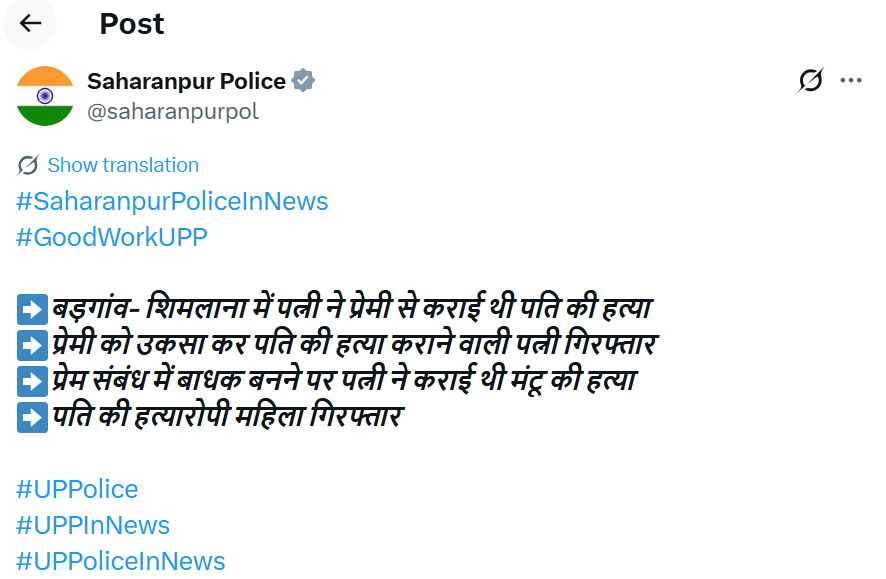 फेसबुक पर अफेयर, पड़ोसी से अवैध संबंध…सहारनपुर में पत्नी ने प्रेमी के साथ मिलकर पति को मारा