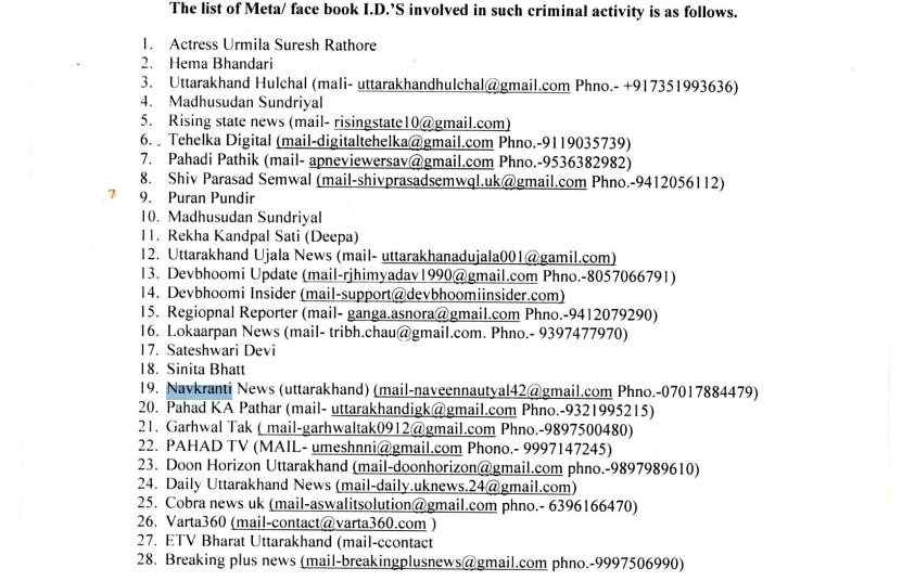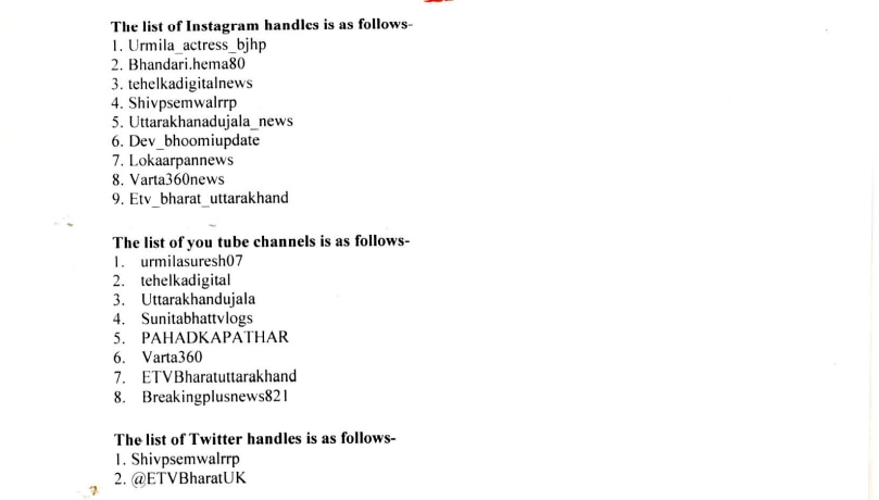 साथ ही उन्होंने 28 मेटा/फेसबुक आईडी, 9 इंस्टाग्राम आईडी, 8 यूट्यूब चैनल और 2 ट्विटर हैंडल के नाम भी दिए है जो कि इस पूरे मामले में शामिल है.