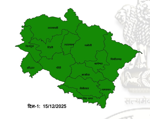 मौसम विज्ञान केंद्र देहरादून के अनुसार आज यानी 15 दिसंबर को प्रदेश के किसी भी जिले में कोई अलर्ट जारी नहीं किया गया है. IMD के मुताबिक, आज पहाड़ी जिले उत्तरकाशी, चमोली और पिथोरागढ़ जिले के ऊंचाई वाले क्षेत्रों में कहीं कहीं बहुत हल्की से हल्की बारिश के साथ बर्फबारी हो सकती है. ये बर्फबारी 3500 मीटर या उससे अधिक ऊंचाई वाले जगहों पर होने की संभावना है. वहीं, मौसम विज्ञान के अनुसार प्रदेश के अन्य जिलों में मौसम शुष्क रहने की संभावना है. हालांकि, मौसम विभाग ने इस बीच आज कोई अलर्ट जारी नहीं किया है.