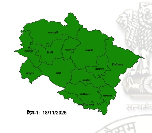 मौसम विज्ञान केंद्र देहरादून के अनुसार प्रदेश में मंगलवार यानी आज 18 नवंबर को मौसम के शुष्क रहने की बता कही गई है. वहीं, आज IMD ने प्रदेश के किसी भी इलाके में कोई अर्लट जारी नहीं किया है. इसके साथ ही पर्वतीय क्षेत्रों में कहीं-कहीं पाला पड़ने की संभावना जताई गई है.